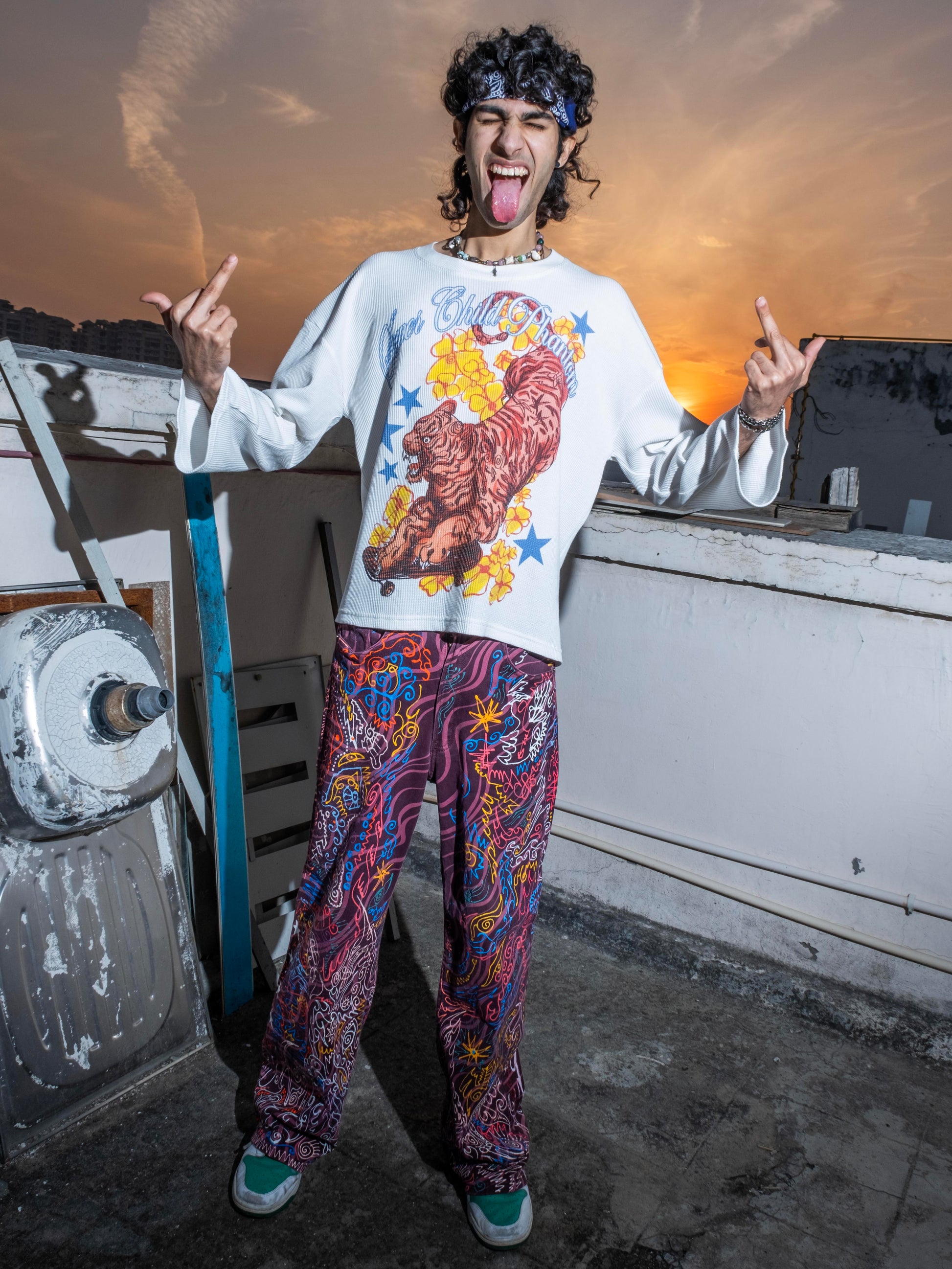 The highlight is the tiger skating graphic, printed boldly on both the front and back—a playful clash of raw power and effortless flow. It’s a reminder that strength doesn’t always roar; sometimes, it glides.